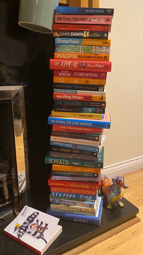 An unusually short post this time. Friends, I am a fraud. Today I measured myself for the first time in about 15 years (after seeing photo evidence from the wonderful KS) and have discovered I am in fact over two inches taller than I thought! So I have 5’7″ (169cm) to read this year. I’m not sure how I feel about no longer being palindromic in height but there we go! Thankfully, I’ve been on a good reading streak this week and I’m now really halfway there! Here’s the updated stack from Whoaaaaaaah, I’m halfway there…. !